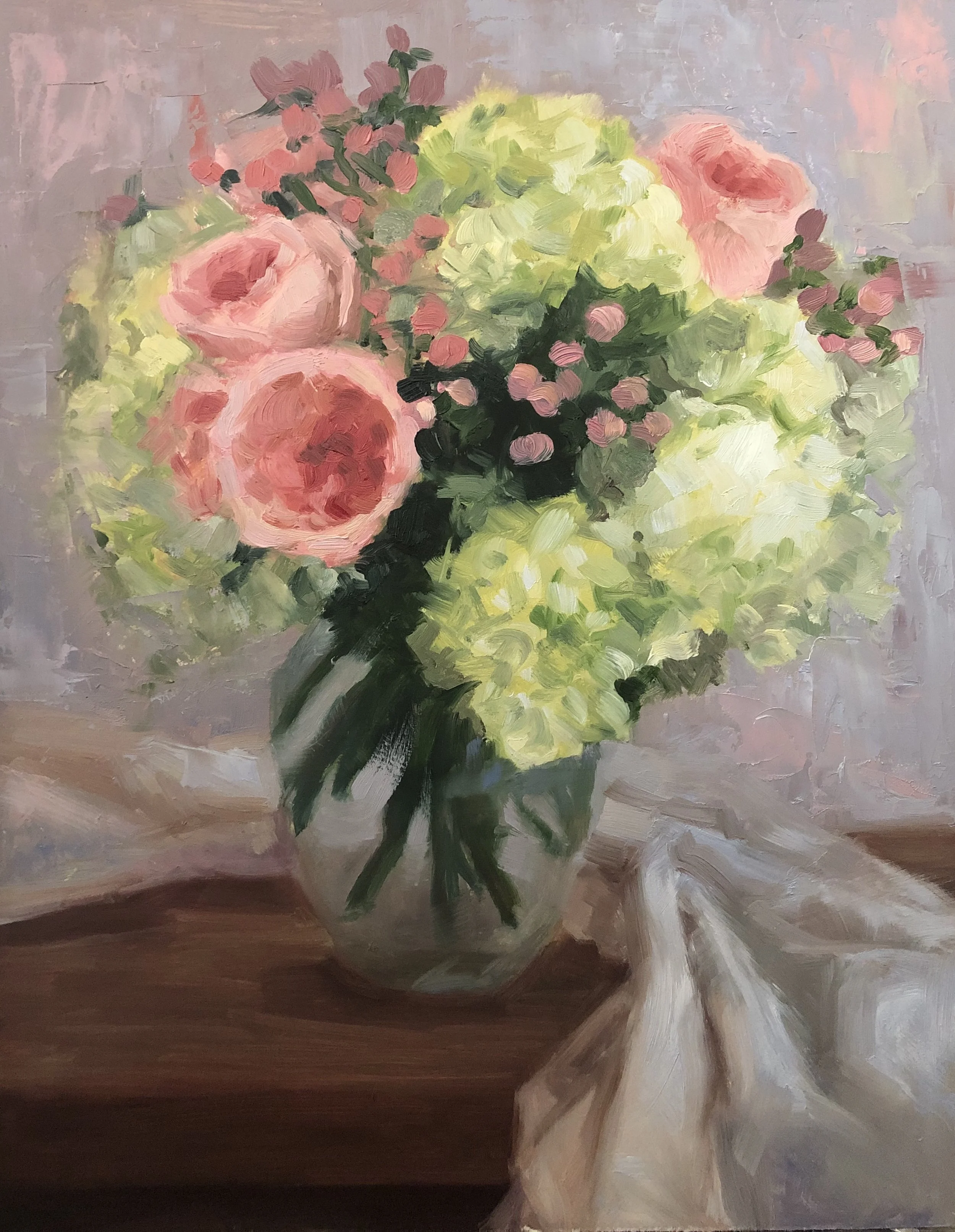 Image 1 of 1 Garden Rose Bouquet No. 1 $350.00 11x14 inches, Oil on Board. Add To Cart Added! 11x14 inches, Oil on Board.